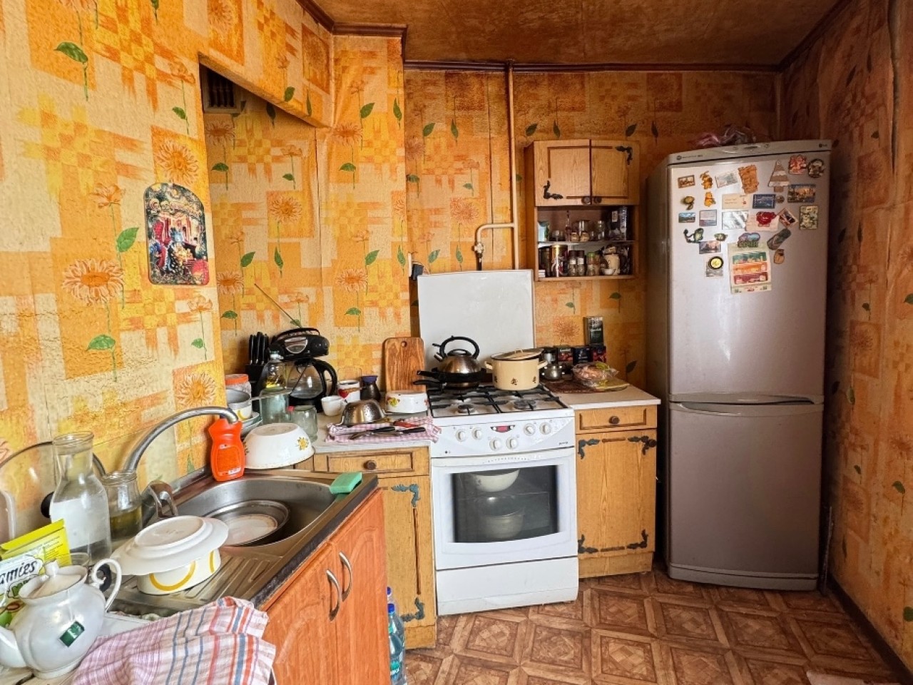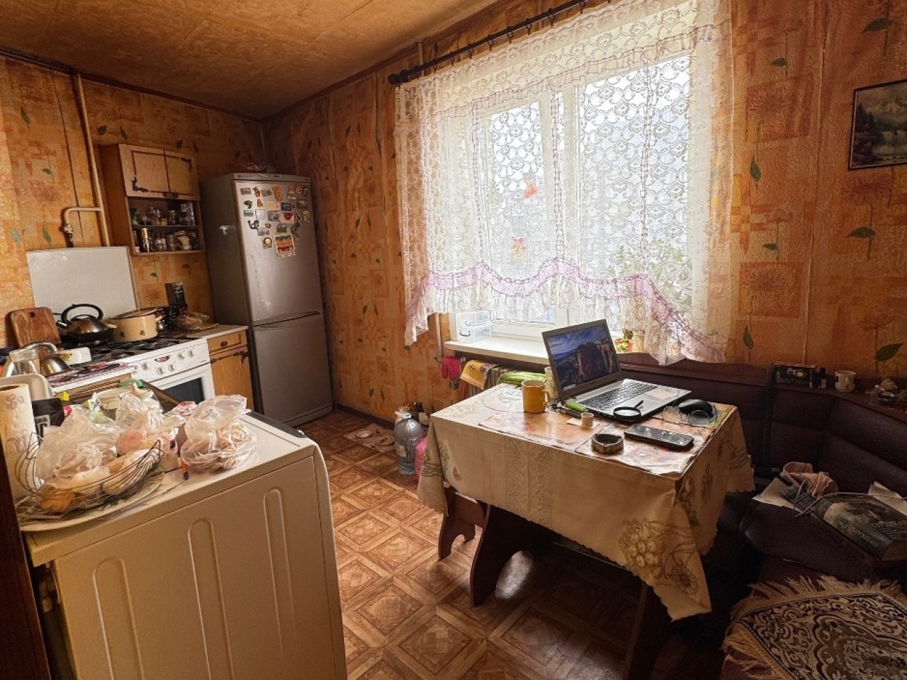 5й квартал. Площадь 56 кв.м. Лифт не работает. В квартире остается мебель и техника(кондиционер,стиральная машинка,холодильник LG,газовая плита).Окна пластик,французский балкон.Пол линолеум.Санузел раздельный,комнаты раздельные.