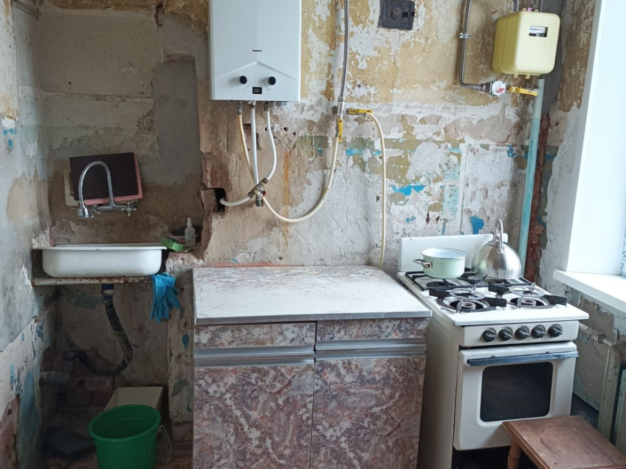 Окна и два балкона - пластик. Новая газовая колонка и унитаз. Санузел раздельный. Квартира в родном состоянии.